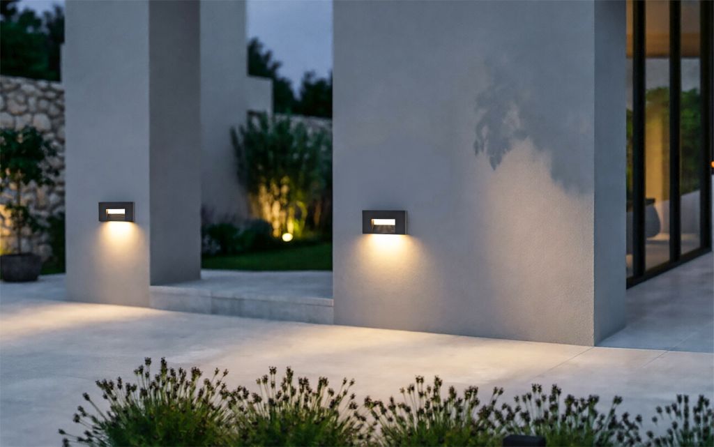 The ARTEO is a new family range consisting of a wall light, step light, and bollard in dark grey. Designed with premium quality for professional users, it features a CCT switch (2700–3200K-4000K) and a frontal diffuser for comfortable illumination.